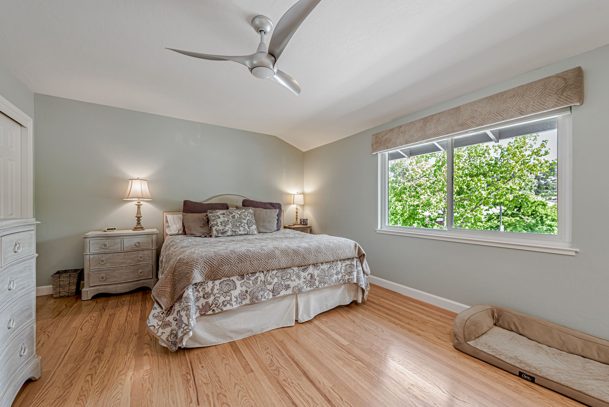 This beautifully updated home features a permitted open-concept layout that seamlessly blends the kitchen, dining, and living areas into one expansive great room filled with natural light from both the front and back of the house. The remodeled kitchen boasts quartz countertops, SS accents, a gas range with electric oven, walk-in pantry, dining area features built-in custom cabinetry and a buffet ideal for entertaining and added storage. Hardwood floor or tile upstairs and durable luxury vinyl on the first floor, with no carpet anywhere. Additional upgrades include fresh interior paint, crown molding, recessed lighting, dual-pane windows, and tastefully remodeled bathrooms. The newer furnace and A/C provide year-round comfort. A downstairs fifth bedroom offers versatility for a home office, guest room, or den. An inside laundry area adds everyday convenience. The backyard is designed for entertaining with a large Trex deck, multiple conversation and BBQ zones, colorful perennial landscaping, drip irrigation, automatic sprinklers, garden beds, four fruit trees, and a storage shed. An EV charger is installed in the garage. This move-in ready home is centrally located near top-rated schools, hiking trails, shopping, dining, and access to a private neighborhood swim club.